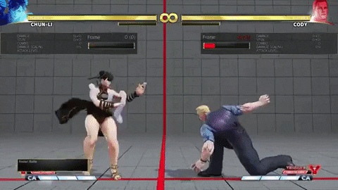 Well the general idea is more of an old school mentality: which of chun’s buttons is gonna beat it. In this case if he is walling up Cody, he can throw in those jabs to stuff any potential EX Zonks used to forcefully make his way in clean.